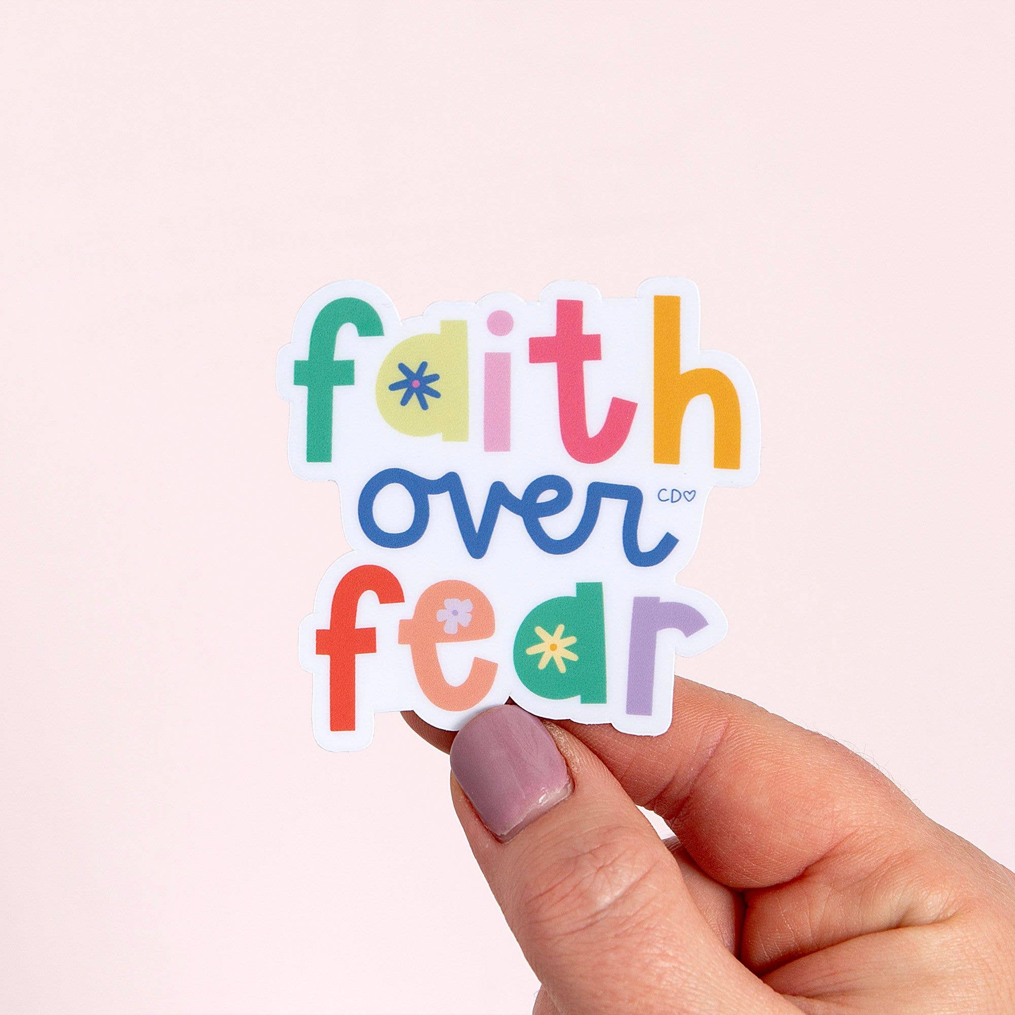 Spread encouragement wherever you go with the Faith Over Fear Decal Sticker! This colorful, faith-inspired sticker features hand-lettered words in playful rainbow tones with dainty flower details on each letter. Perfect for decorating your laptop, water bottle, Bible cover, mirror, or notebook, it’s a daily reminder to choose faith in every season. Waterproof and durable, it’s great for gifting to teens, friends, Bible study groups, or anyone needing a little hope and courage. Add it to care packages, Easter baskets, or back-to-school gifts to share a message that matters.