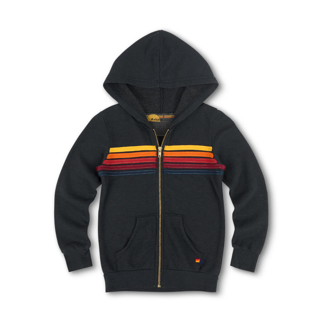 Kid’s 5 Stripe Zip Hoodie - Charcoal - 6 is backordered and will ship as soon as it is back in stock.