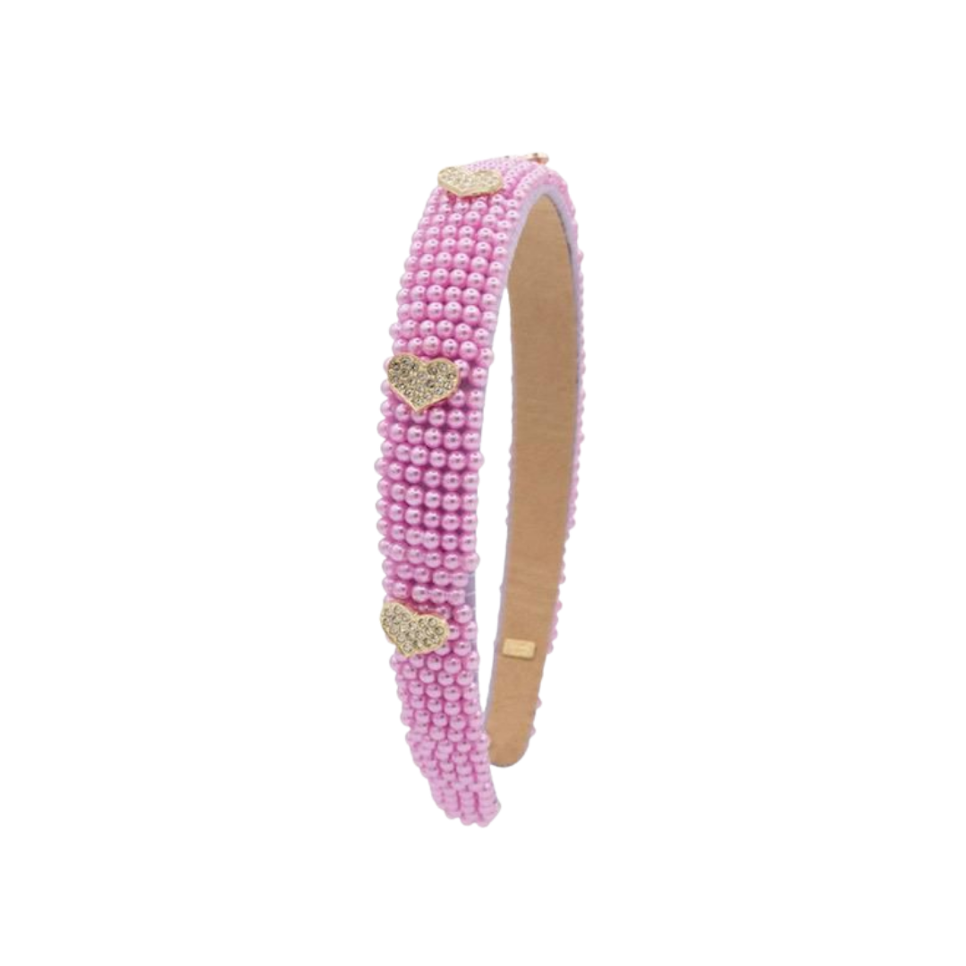 Pink Pearl Headband with Heart Charms