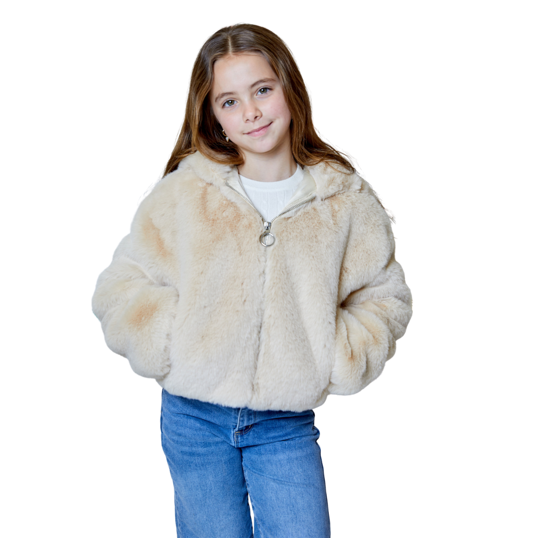 Tan Hooded Fur Jacket - XL (12) is backordered and will ship as soon as it is back in stock.