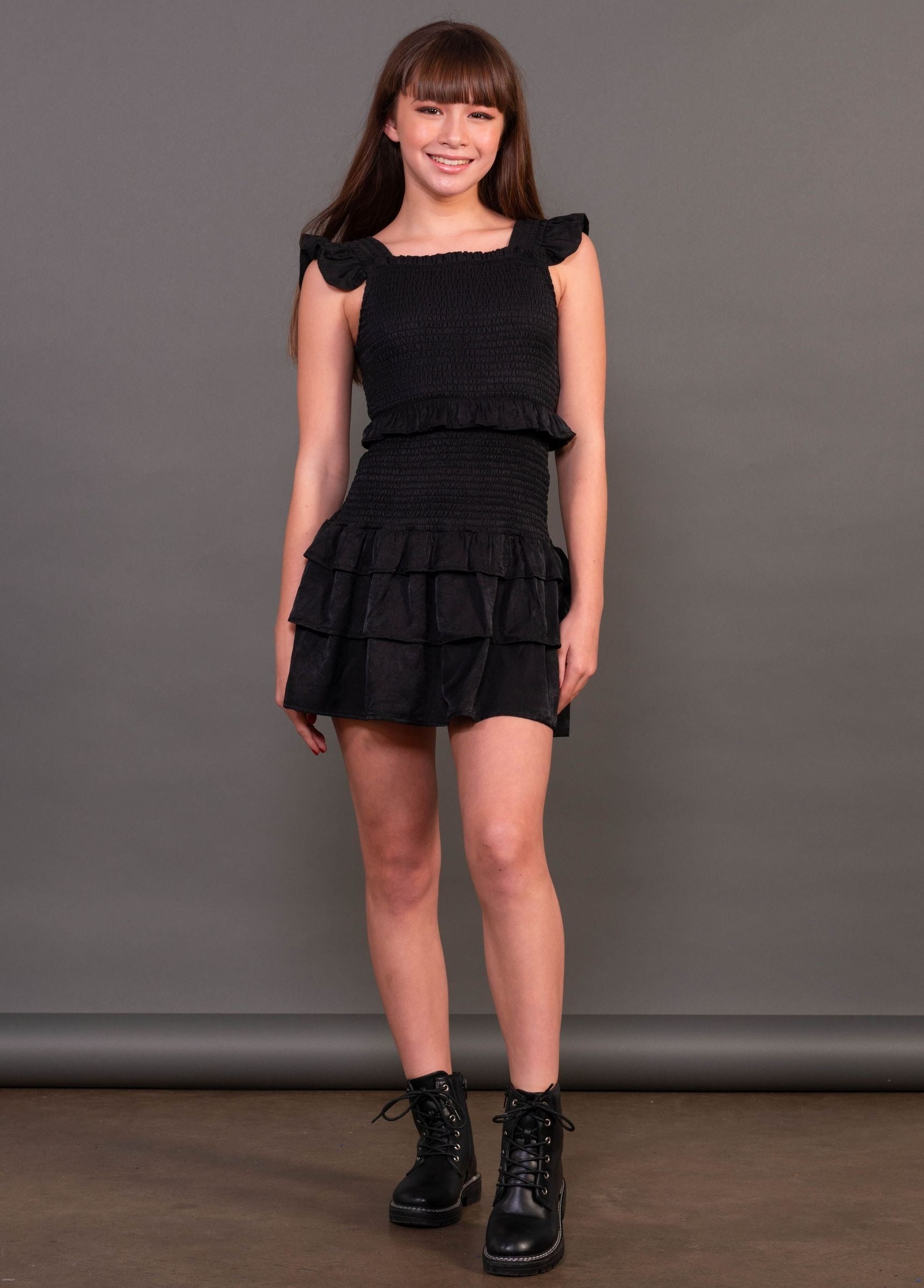 Sophia Smocked Ruffle Dress - Black
