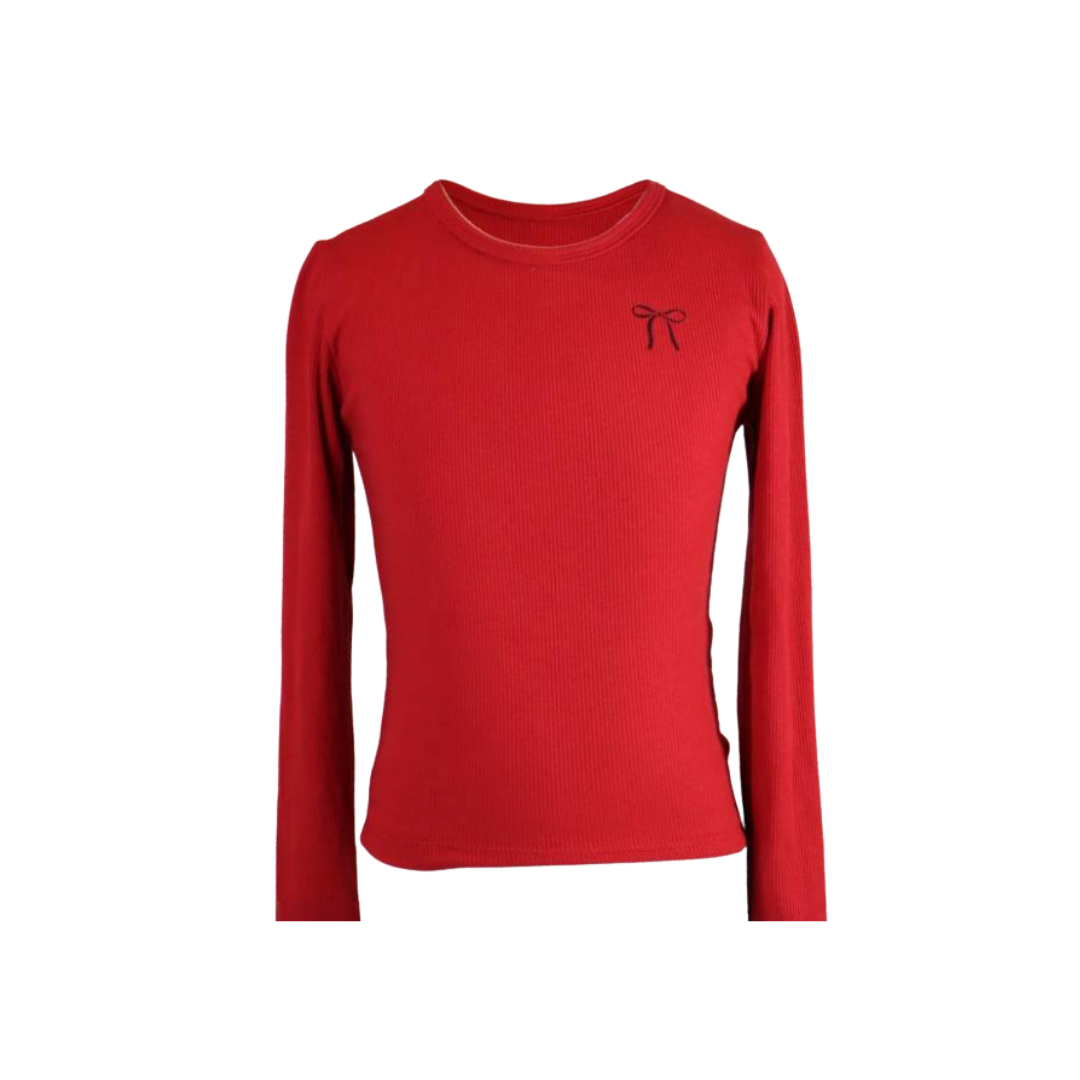 Red Rib Black Bow Top