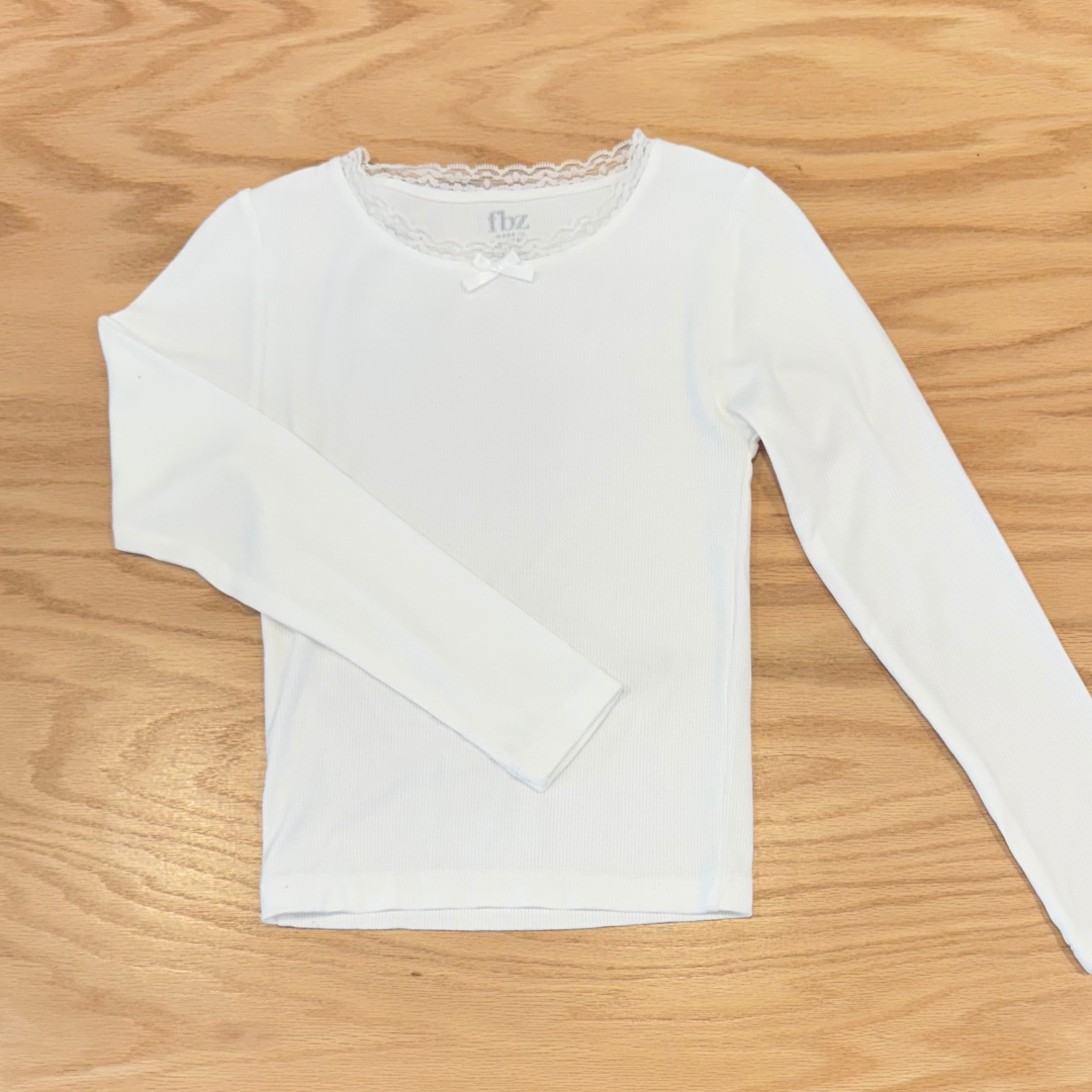 White Lace Trim Long Sleeve - L (10/12) is backordered and will ship as soon as it is back in stock.