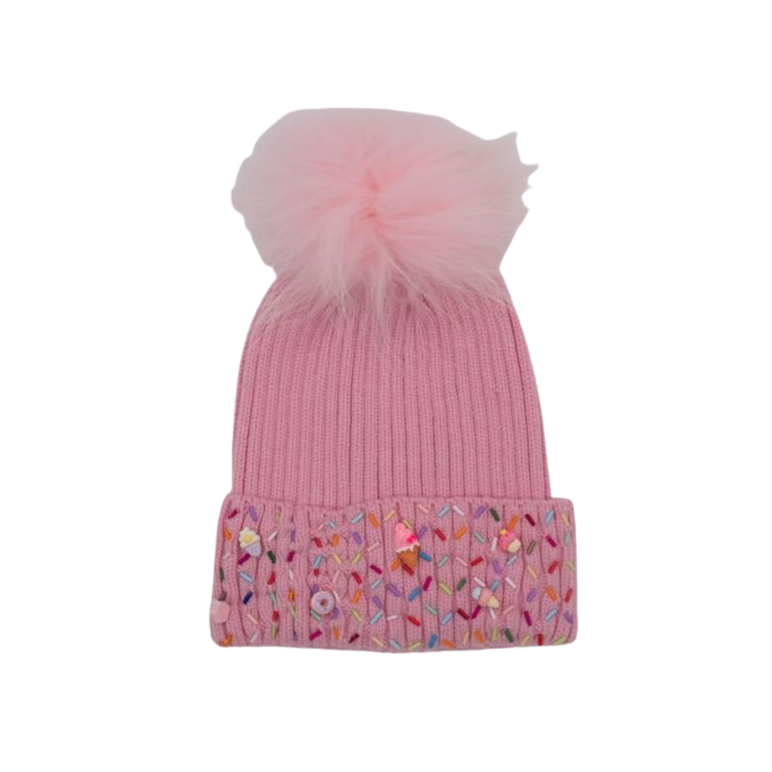 Sprinkle Treat Pom Beanie - Purple is backordered and will ship as soon as it is back in stock.