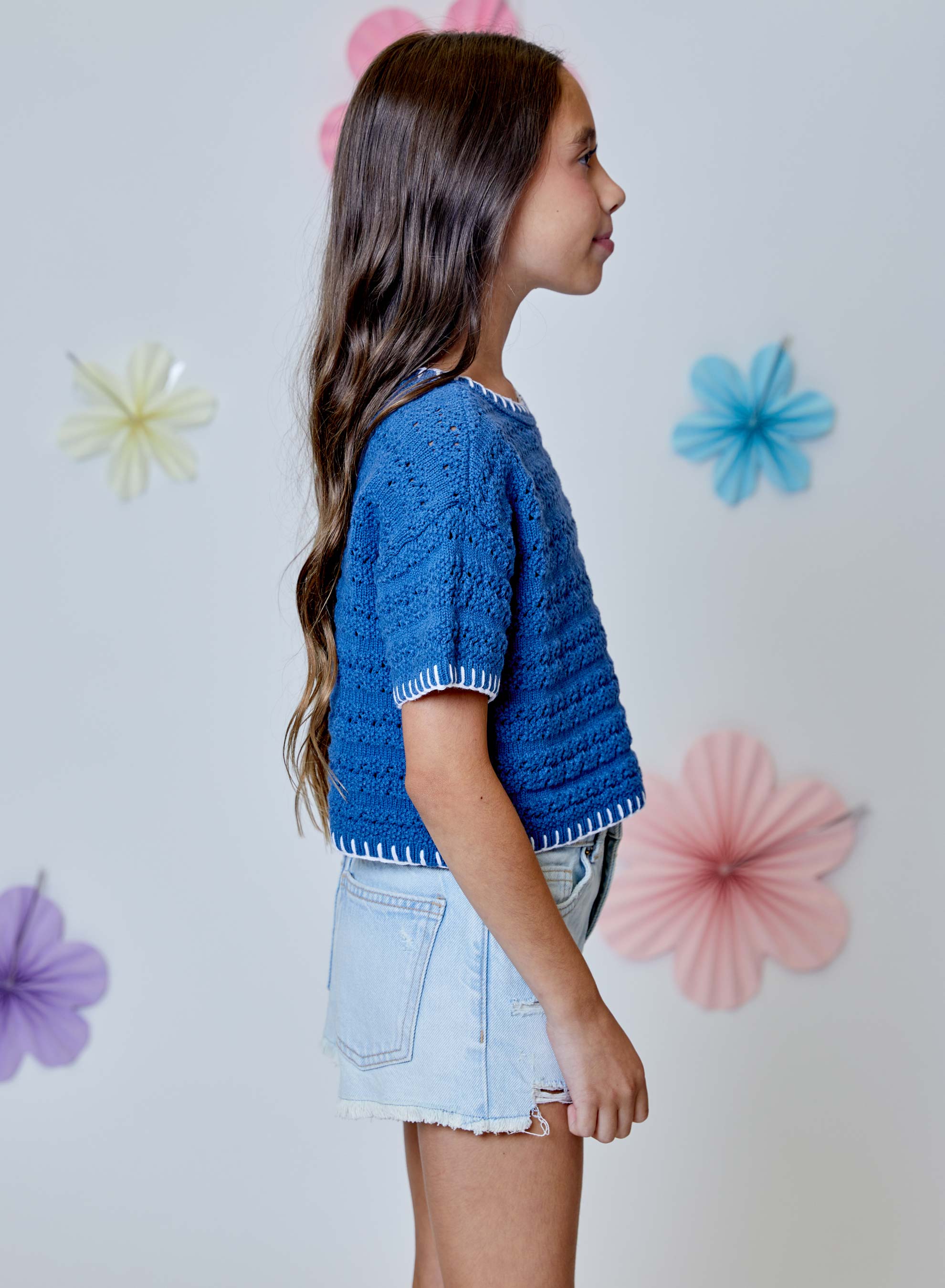 Blue Crochet Tee