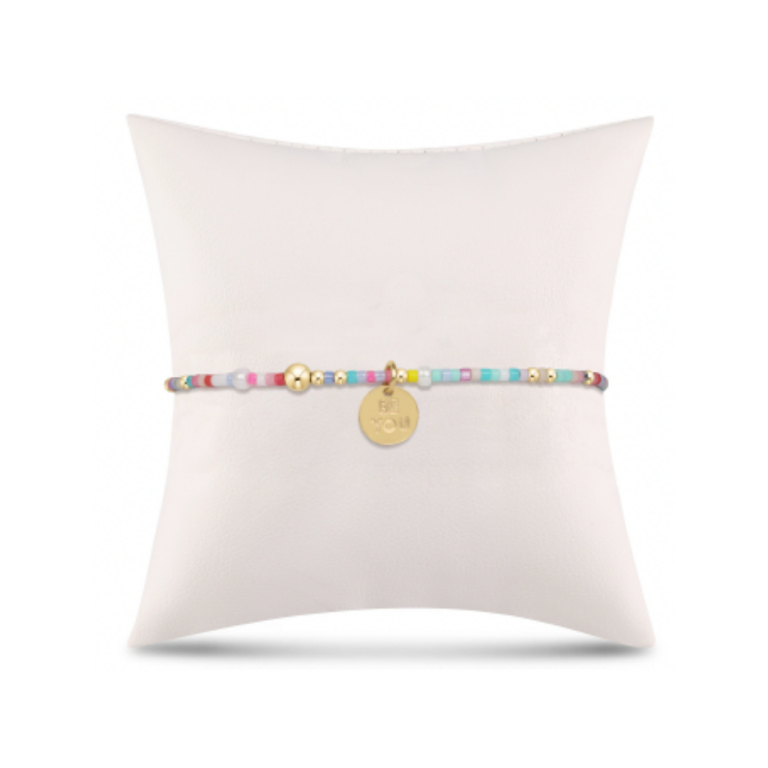 - Hand beaded on high performance elastic for a slight stretch to easily roll on and off your wrist