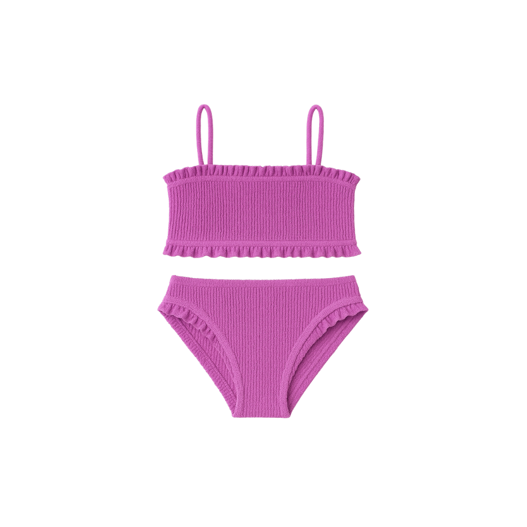 June Crinkle Ruffle Bandeau Two Piece - Orchid - 7 is backordered and will ship as soon as it is back in stock.