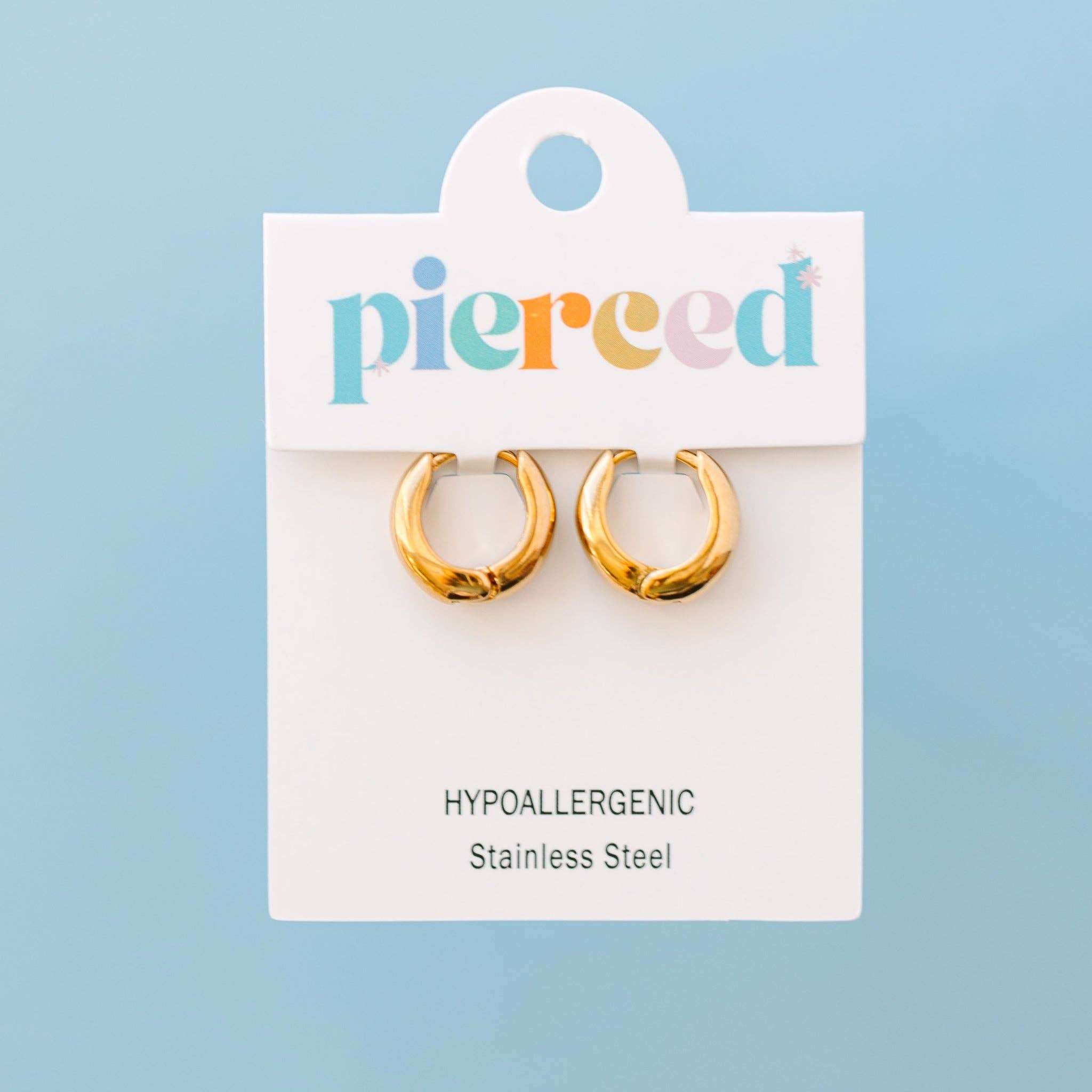 High-quality earrings made for girls with sensitive ears and to join them on their everyday adventures. We are passionate about creating classic and fun designs inspired by the curiousness of childhood. Materials * Surgical grade stainless steel * 18K gold plated * Lead & nickel free * Always hypoallergenic Details * 10mm clasp huggies * Water-resistant- can be worn in the pool and bath