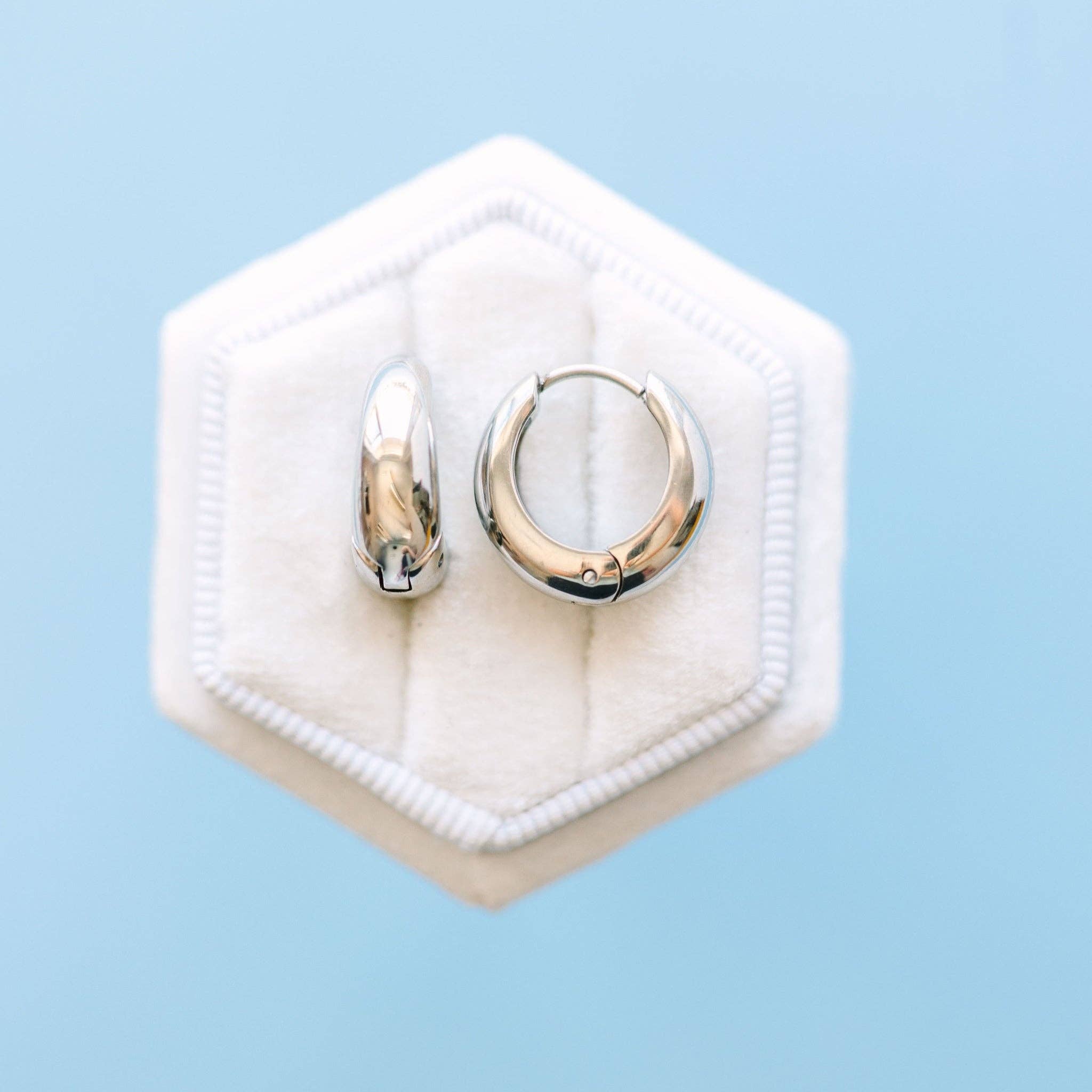 High-quality earrings made for girls with sensitive ears and to join them on their everyday adventures. We are passionate about creating classic and fun designs inspired by the curiousness of childhood. Materials * Surgical grade stainless steel * Lead & nickel free * Always hypoallergenic Details * 10mm clasp huggies * Water-resistant- can be worn in the pool and bath