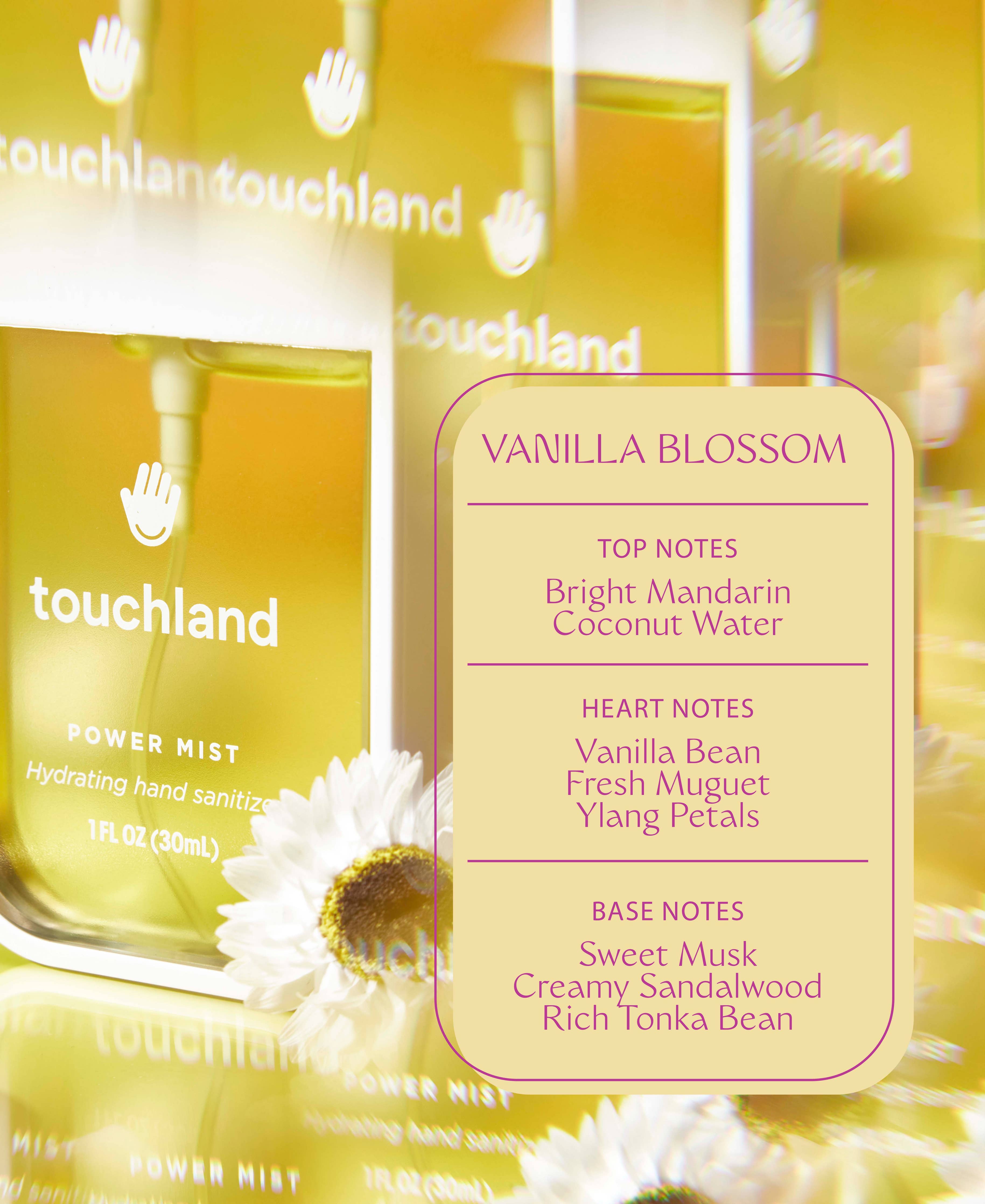 Vanilla Blossom Scent: This sunny interpretation of vanilla, blending bright notes of mandarin, coconut water and captivating petals with rich tonka bean and warm vanilla.