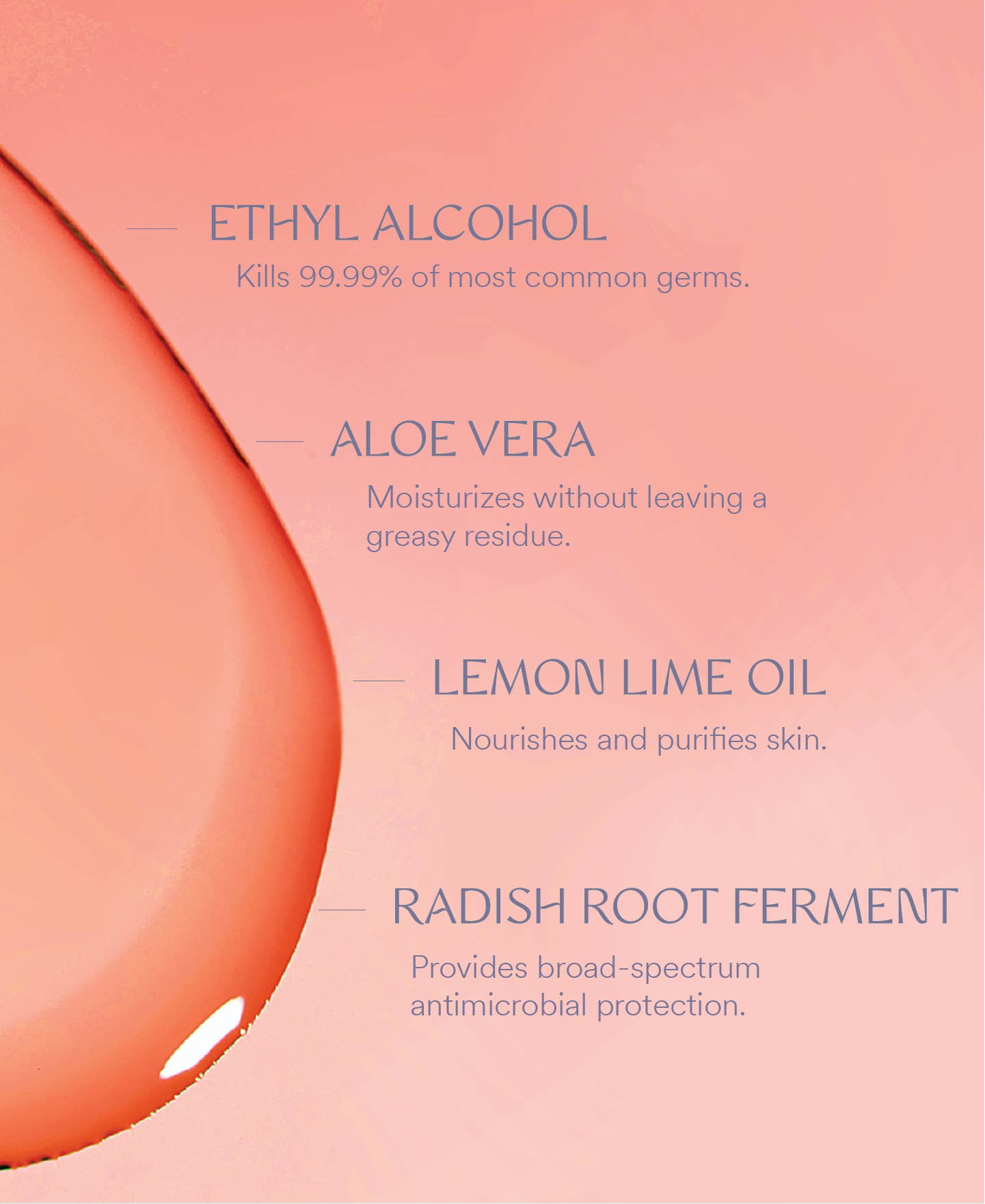 ● Hydrating. Fast-absorbing. Vegan. Cruelty-free. Dermatologist tested. ● 70% Ethyl Alcohol. Kills 99.99% of most harmful germs.