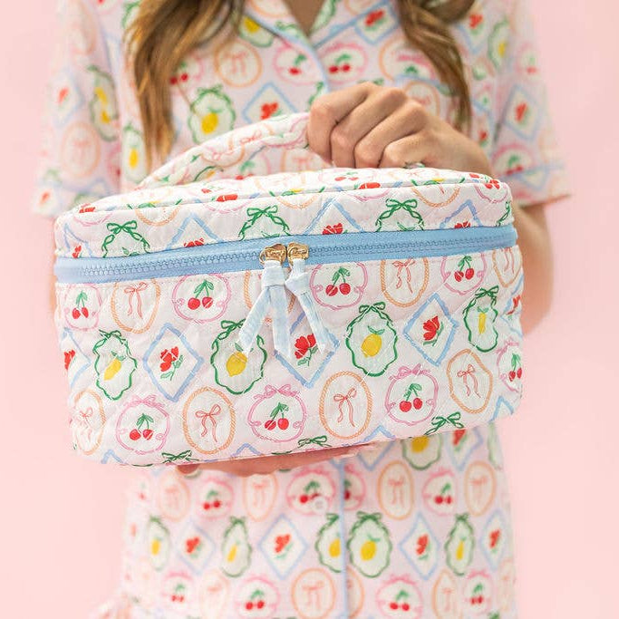 Quilted Cosmetic Bag with Top Handle - Fruit Cocktail