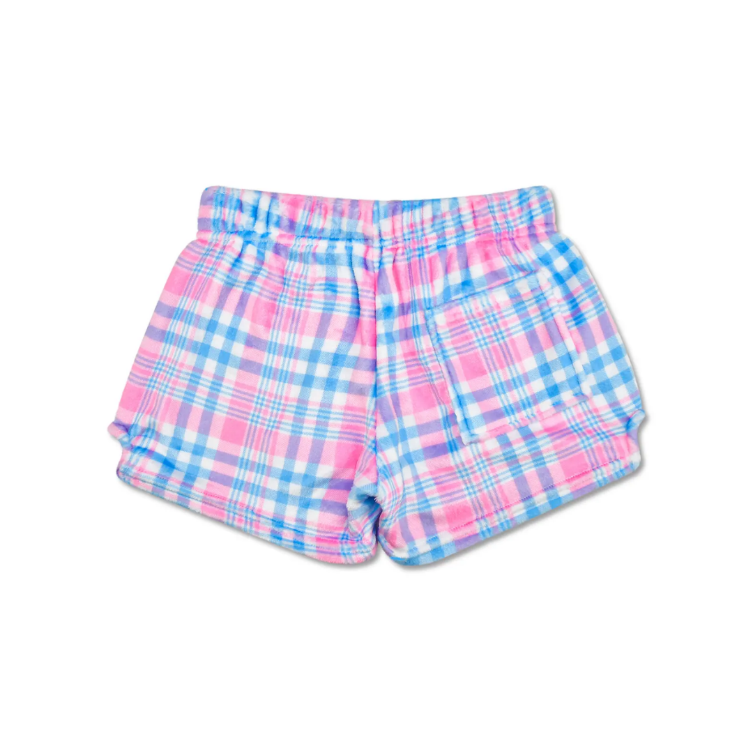 Pink Theme Varsity Plush Shorts - L (14) is backordered and will ship as soon as it is back in stock.