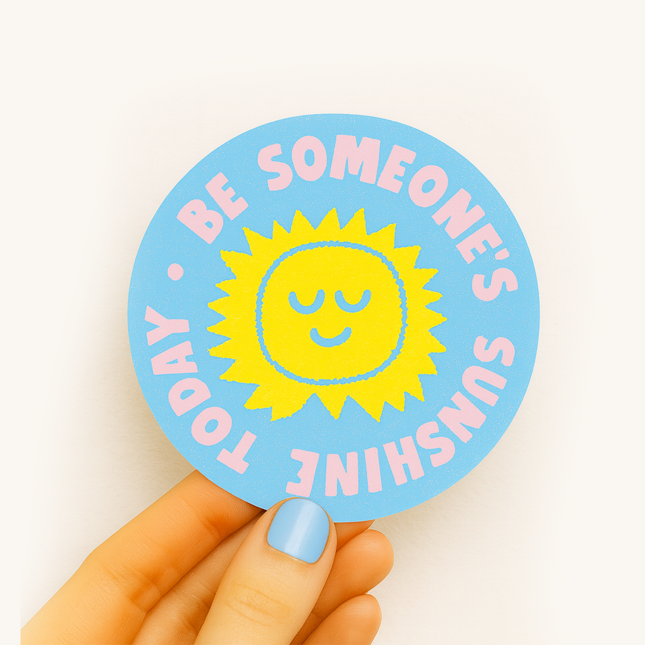 Bright and uplifting, our “Be Someone’s Sunshine” sticker features a happy sun illustration with soft pastel blues, warm yellow, and playful retro lettering. A feel good design made to spread positivity, kindness, and good vibes wherever it lands. Perfect for decorating water bottles, laptops, planners, phones or notebooks. Size: 3" wide ✔ Designed & Printed in the USA ✔ Low-Waste Design: Thinner backer material reduces unnecessary waste compared to traditional vinyl stickers better for the planet without compromising quality ✔ Eco-Friendly Packaging: Shipped loose in a biodegradable, plant-based sleeve ✔ Durable & Long-lasting ✔ Waterproof & Weatherproof ✔ Dishwasher safe ✨
