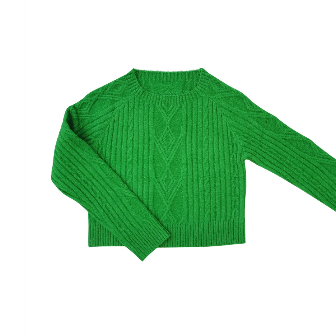 Green Braid-Knitted Sweater - 6/7 is backordered and will ship as soon as it is back in stock.