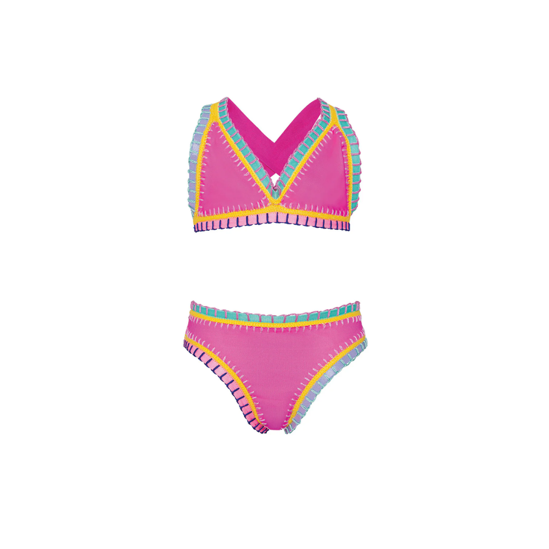 Bright Pink Rainbow Embroidered Bikini