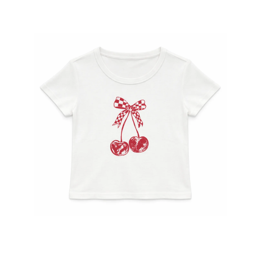 Cherry Check Tee - S (7/8) is backordered and will ship as soon as it is back in stock.
