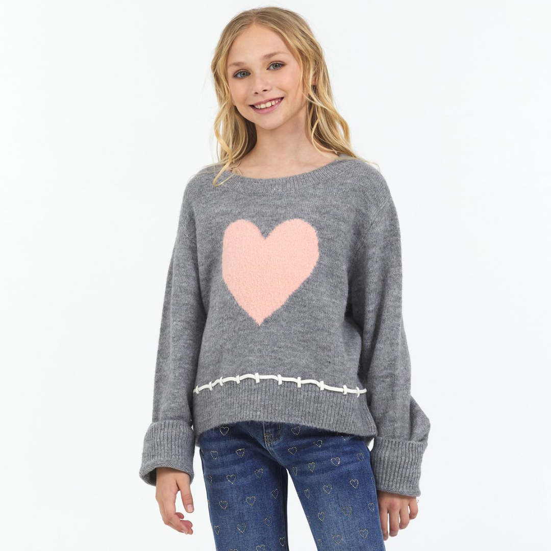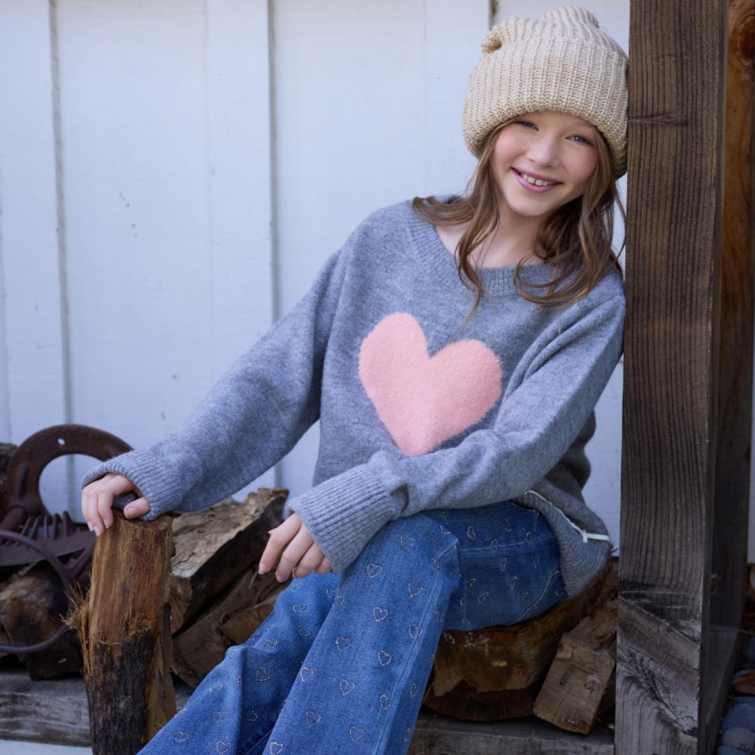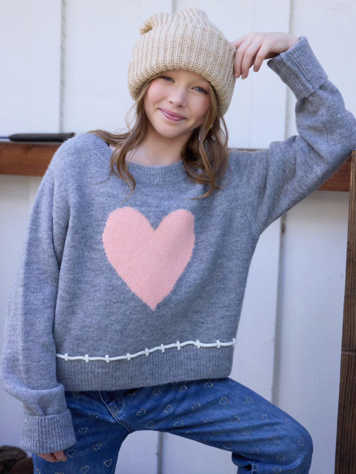 Pink Heart Sweater - XL (16) / Grey is backordered and will ship as soon as it is back in stock.