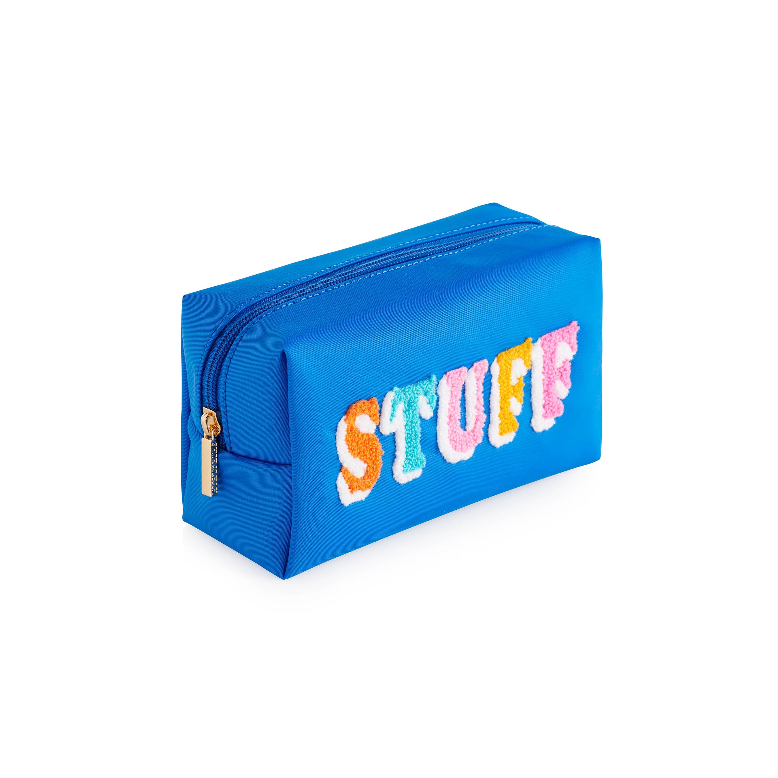 Polyester; Top Zip Closure . Keep All Your Essentials In One Place With The Vibrant and Fun "Stuff" Small Zip Pouch! Featuring A Bold Blue Exterior and Playful Multicolored Chenille Lettering That Screams Personality, This Pouch Is Perfect For Stashing Your Makeup, Toiletries, Or Whatever "Stuff" You Need On The Go. The Compact Yet Roomy Design Makes It A Must-Have For Both Travel and Everyday Organization. With A Durable Zipper and Eye-Catching Style, It'S As Functional As It Is Fabulous.
