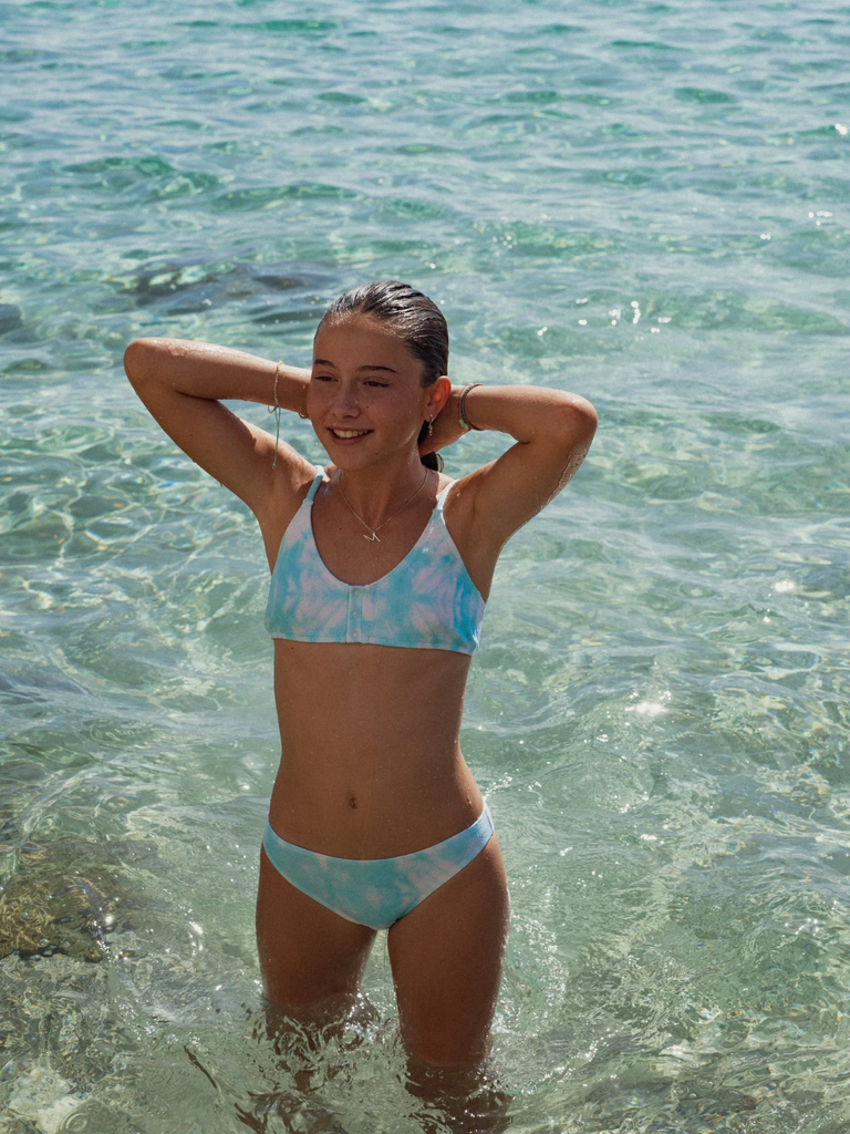 Taha’a Two Piece Swimsuit - Tie Dye Blue - 10 is backordered and will ship as soon as it is back in stock.